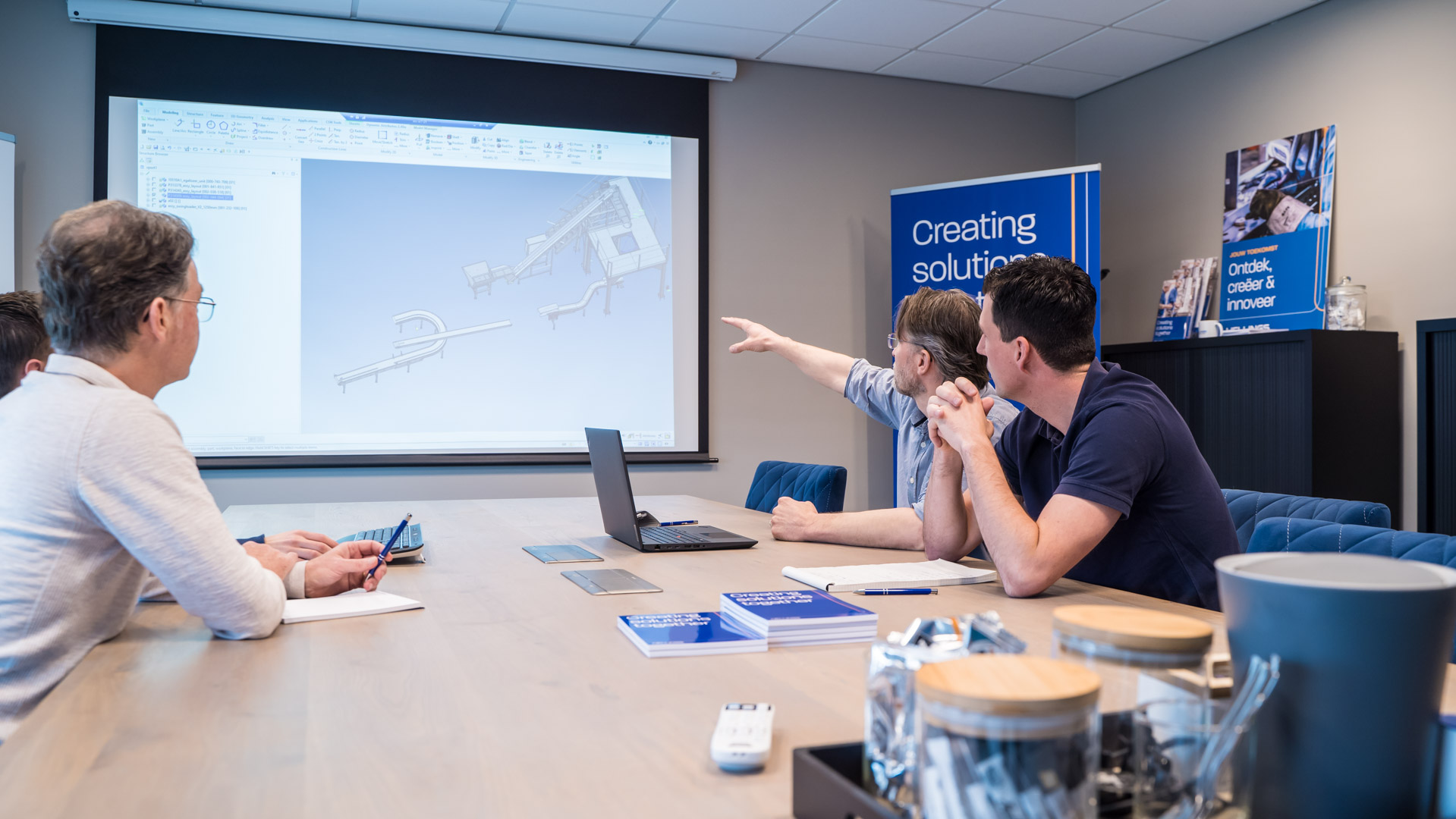 Ons team van meer dan 100 professionals combineert passie voor techniek met creativiteit en teamwork. We werken dagelijks samen om slimme en innovatieve oplossingen te realiseren, of het nu gaat om een enkele machine, een complete productielijn of geavanceerde robotica oplossingen. Samen maken we het mogelijk.